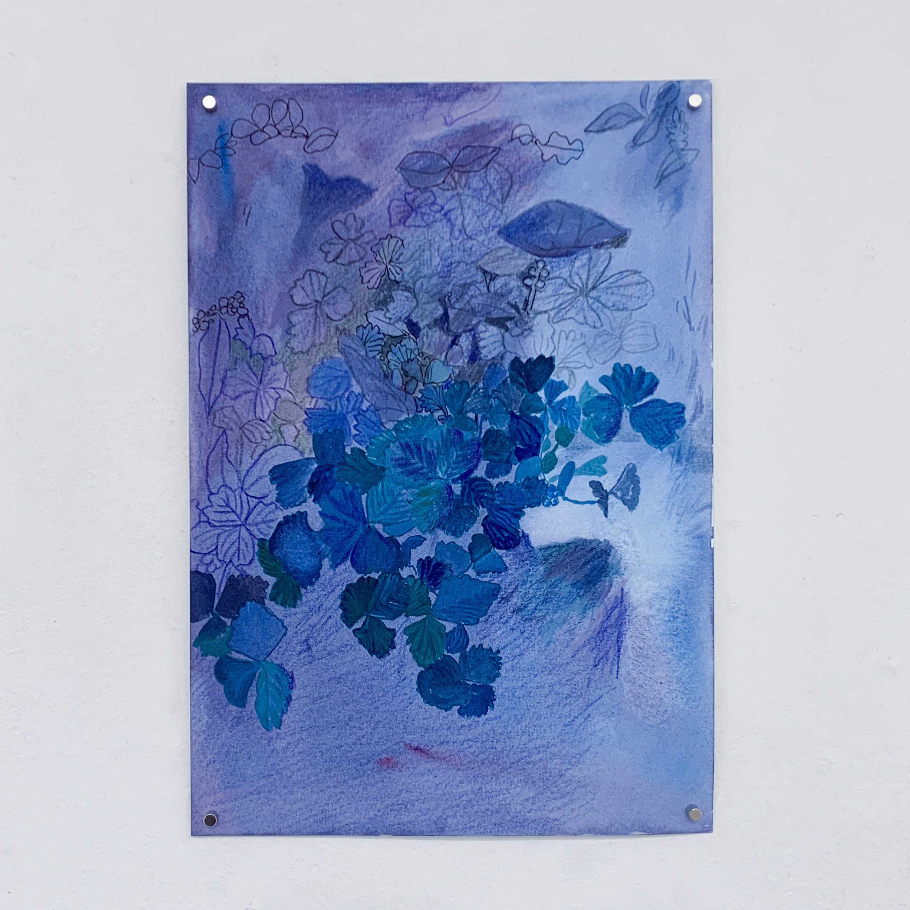 素材: 紙にアクリル絵の具、色鉛筆、ペン、鉛筆
