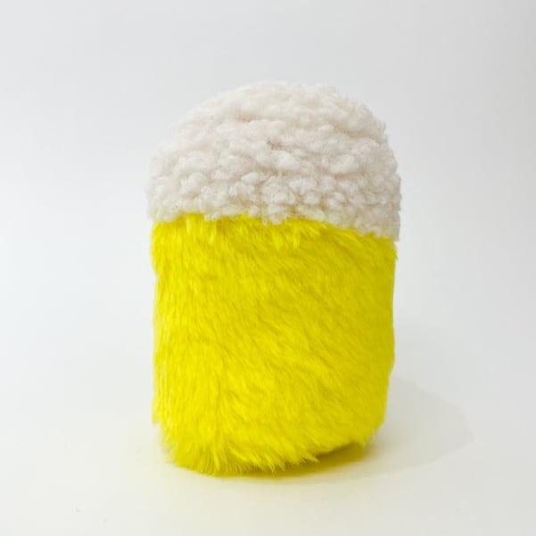 グラスビールをモチーフにしたぬいぐるみです。本品はビール部分がファー、泡部分がボア素材となっています。作家によるハンドメイドの一点ものです。